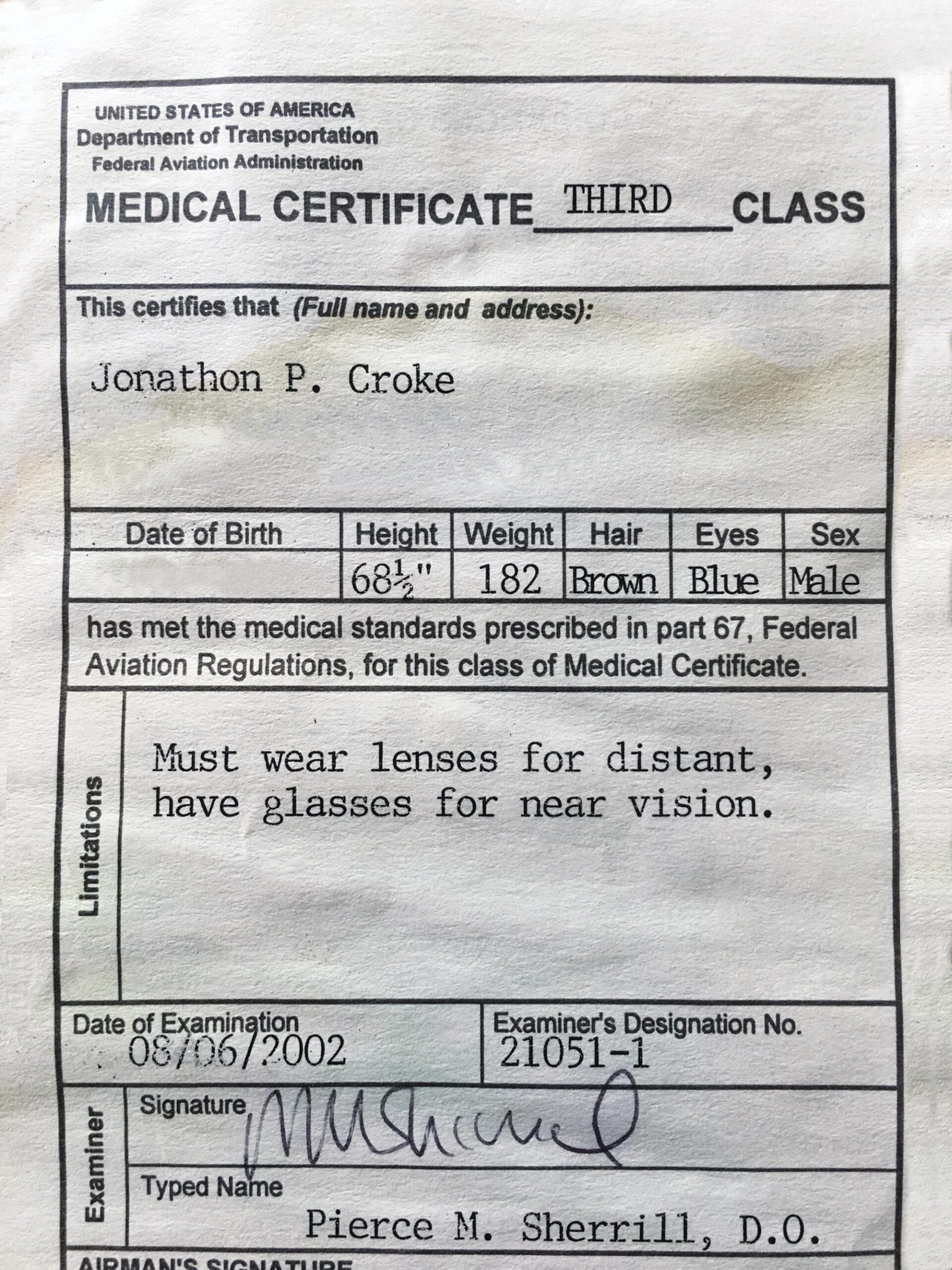 Most responses are a bit convoluted. But with a little digging, I discover that renewing their medical ticket might be a bit challenging at their advanced age. They are referring, of course, to the traditional third-class (and above) medical exam that they satisfied years ago. We all know that medical questionnaires are loaded with questions that do not have black-and-white answers.